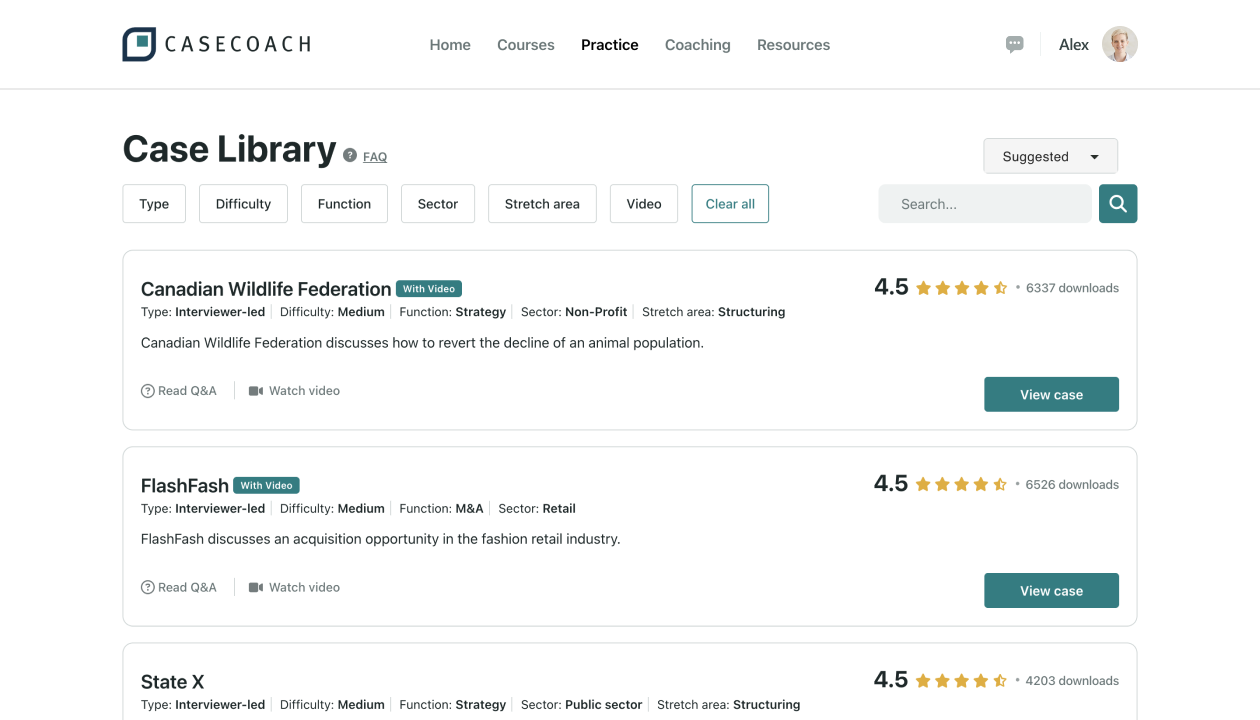 Full access to our Consulting Interview Prep Toolkit including courses, Case Library, Practice Room, Drills & the Dashboard