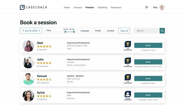 In our Practice Room, you can get all the live case interview practice you need to succeed. Book unlimited mock interviews with other top candidates and track your performance.